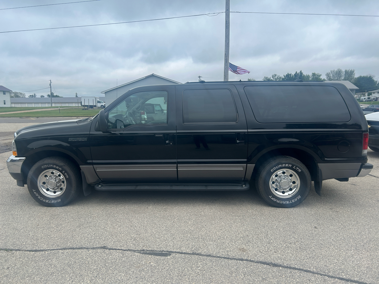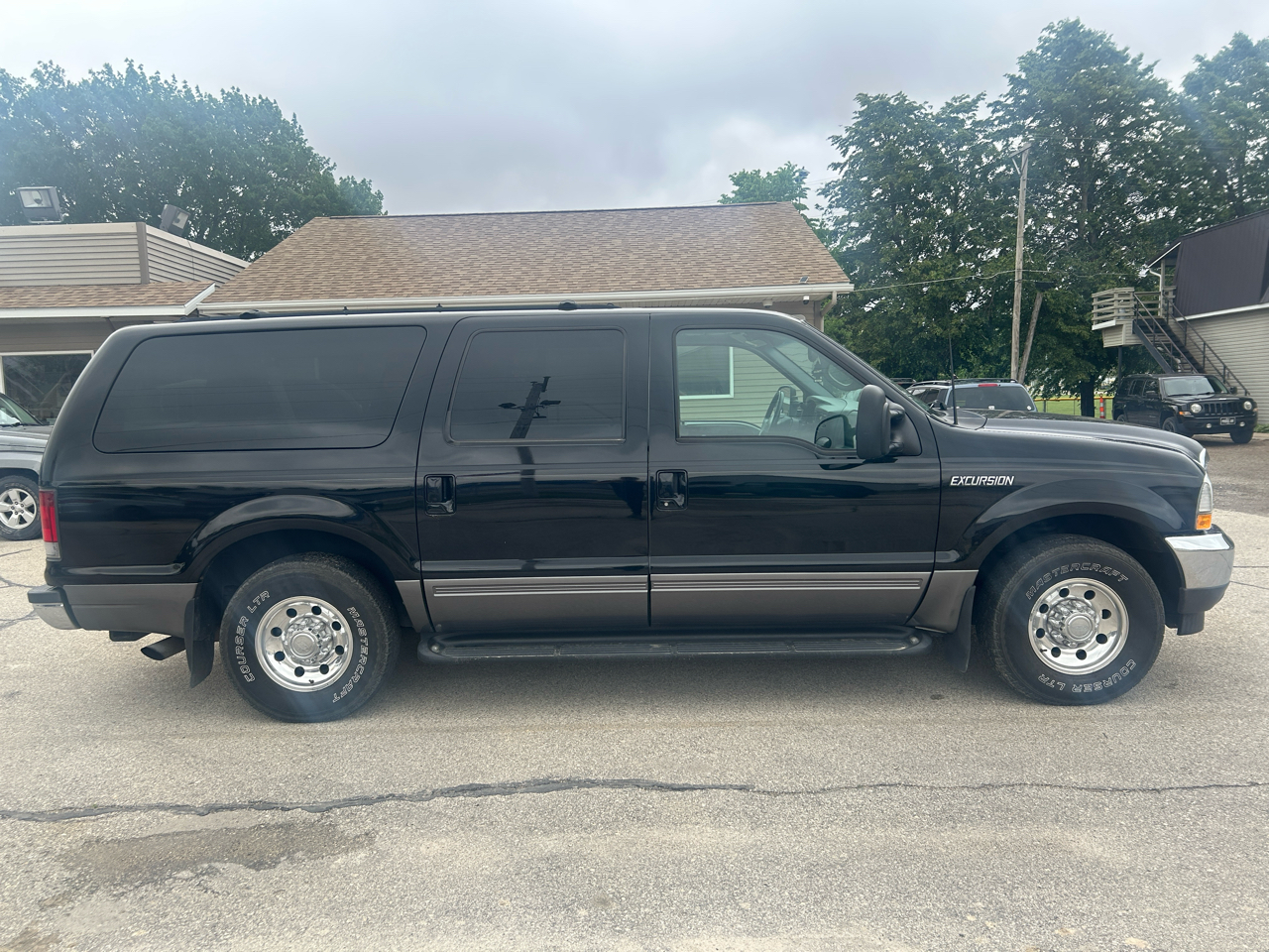 Behold, the sleek and powerful Black 2002 Ford Excursion! This adventure-ready beast is not just your average SUV - it's a reliable road companion that's perfect for all your family's escapades.
